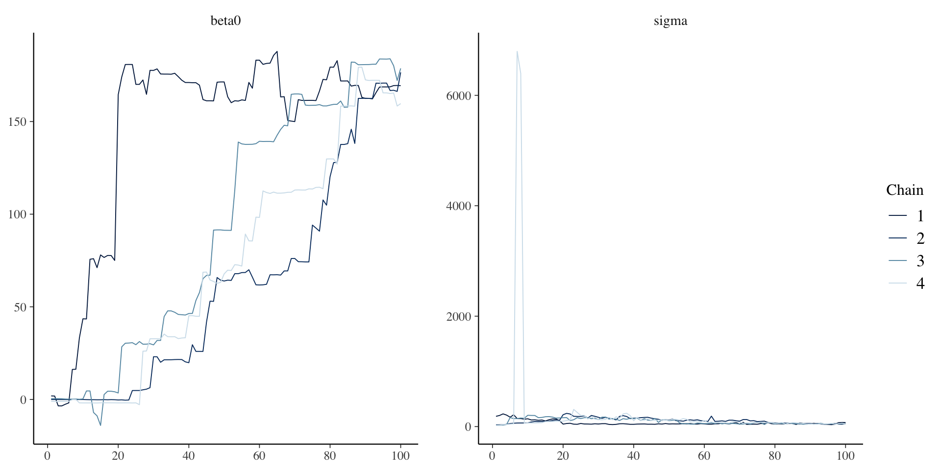 cmdstanr wants you to compile first, then run the Markov chainrstan conducts compilation (if needed) then runs the Markov chainN and a vector named ycmdstanr and rstancmdstanrcmdstanr, running the chain comes from the $sample() function that is a part of the compiled program objectrstanverbose option is helpful for detecting when things break# A tibble: 3 × 10