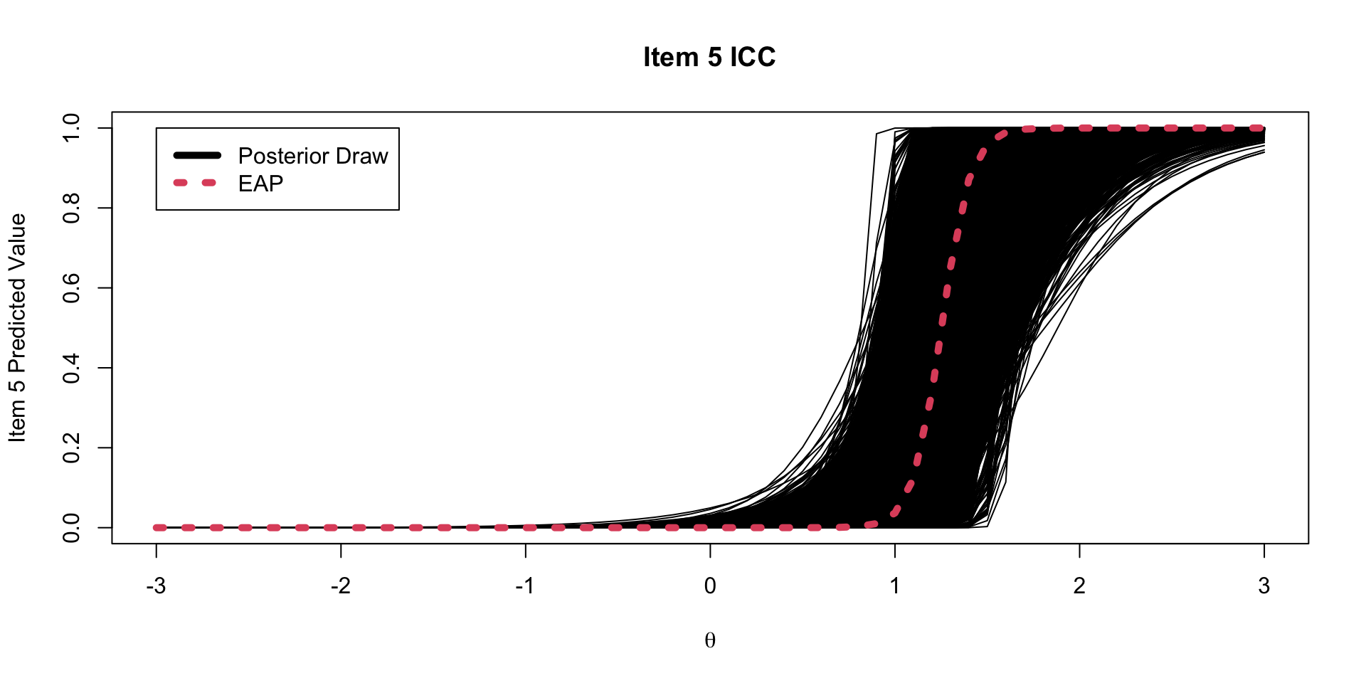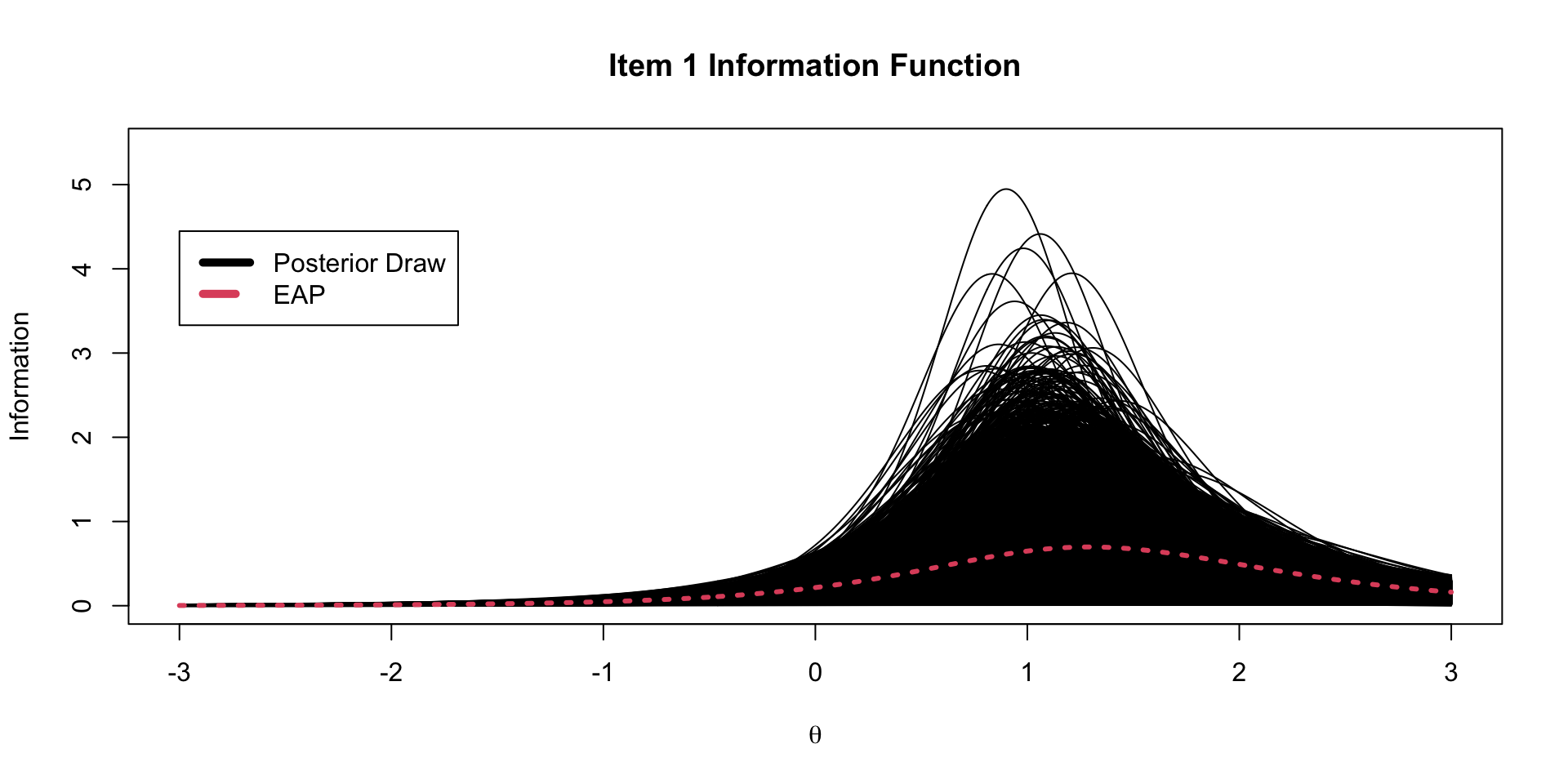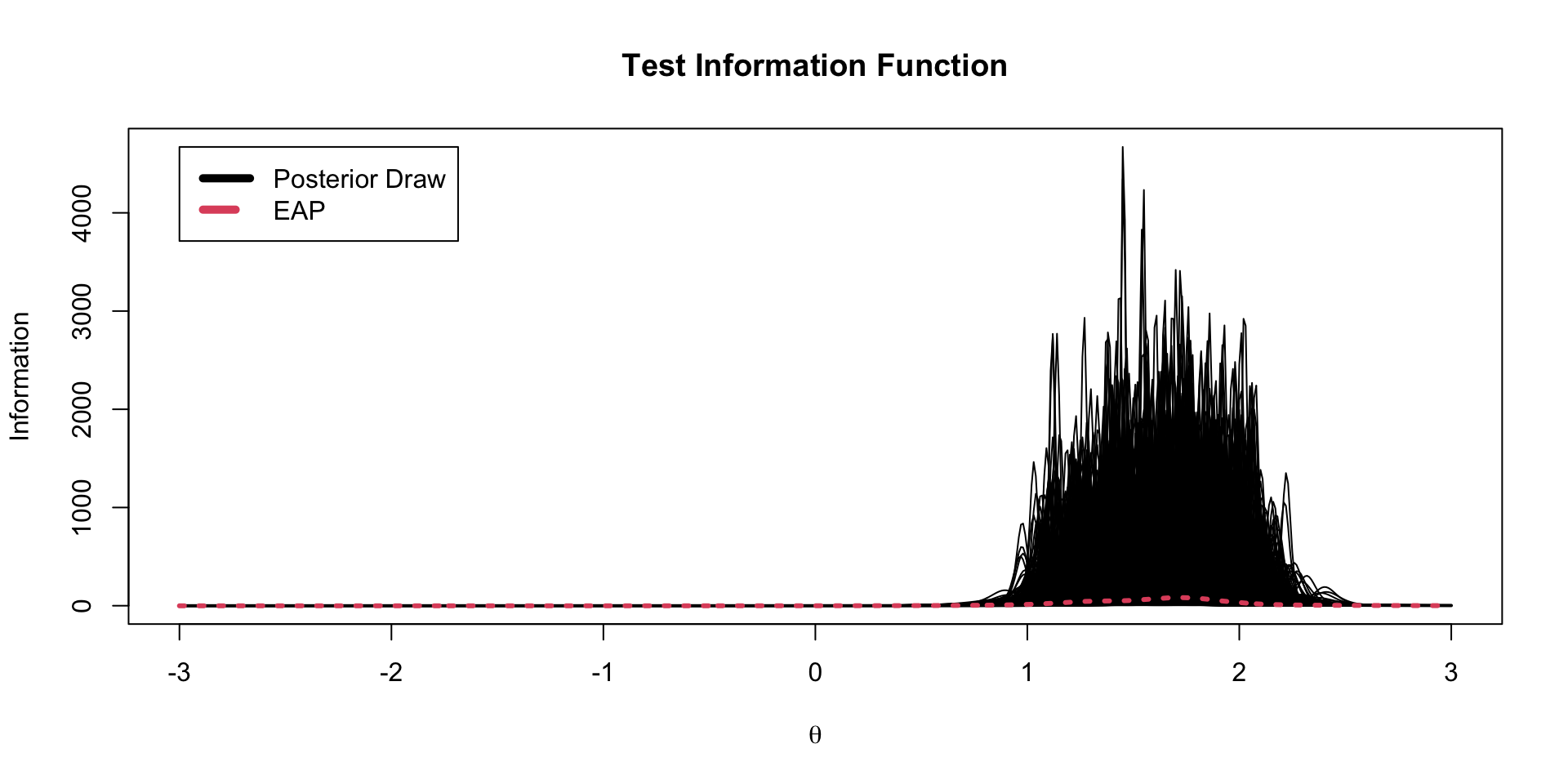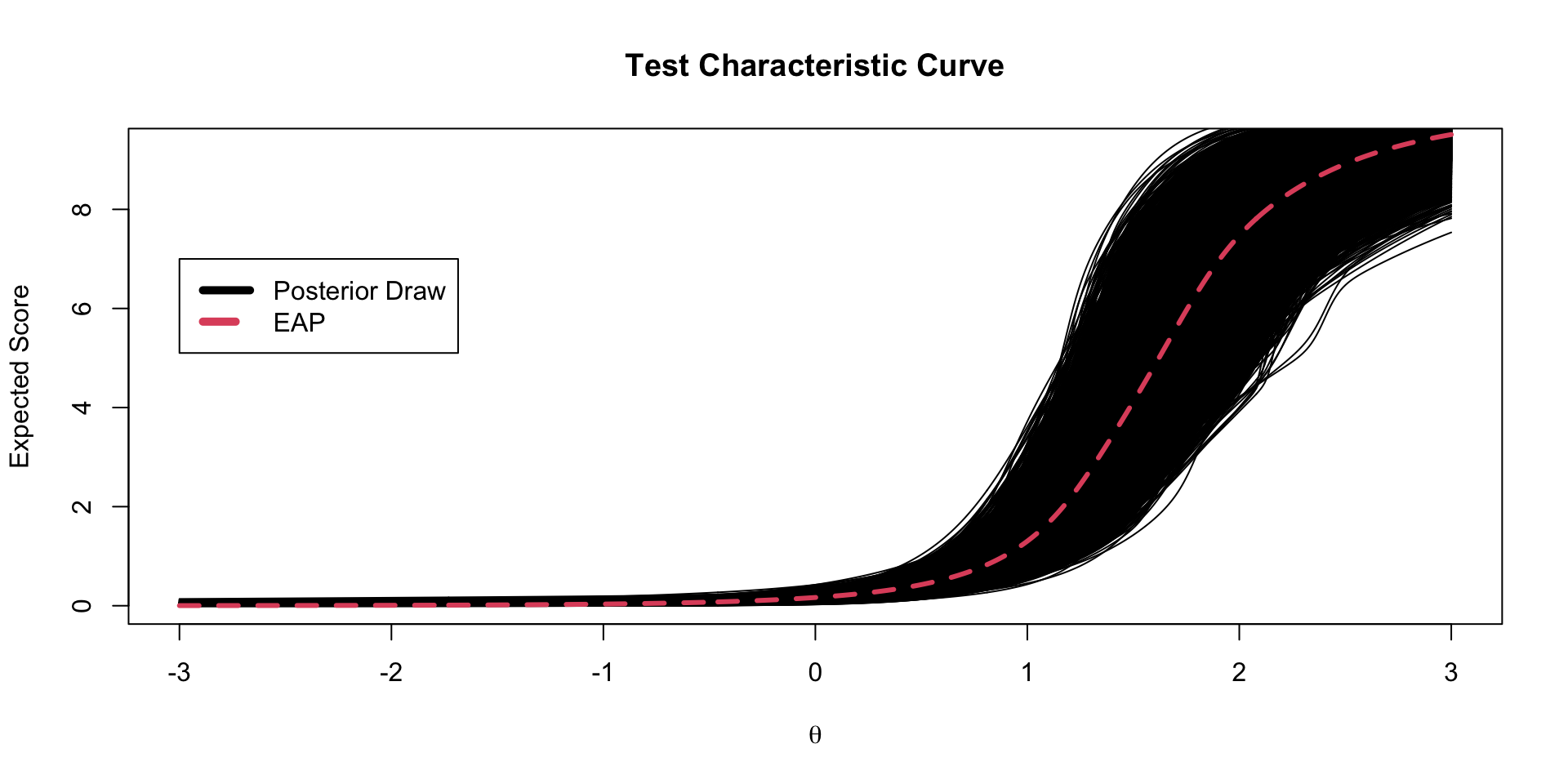We can also use the generated quantities block to estimate some important auxiliary statitics from IRT models
