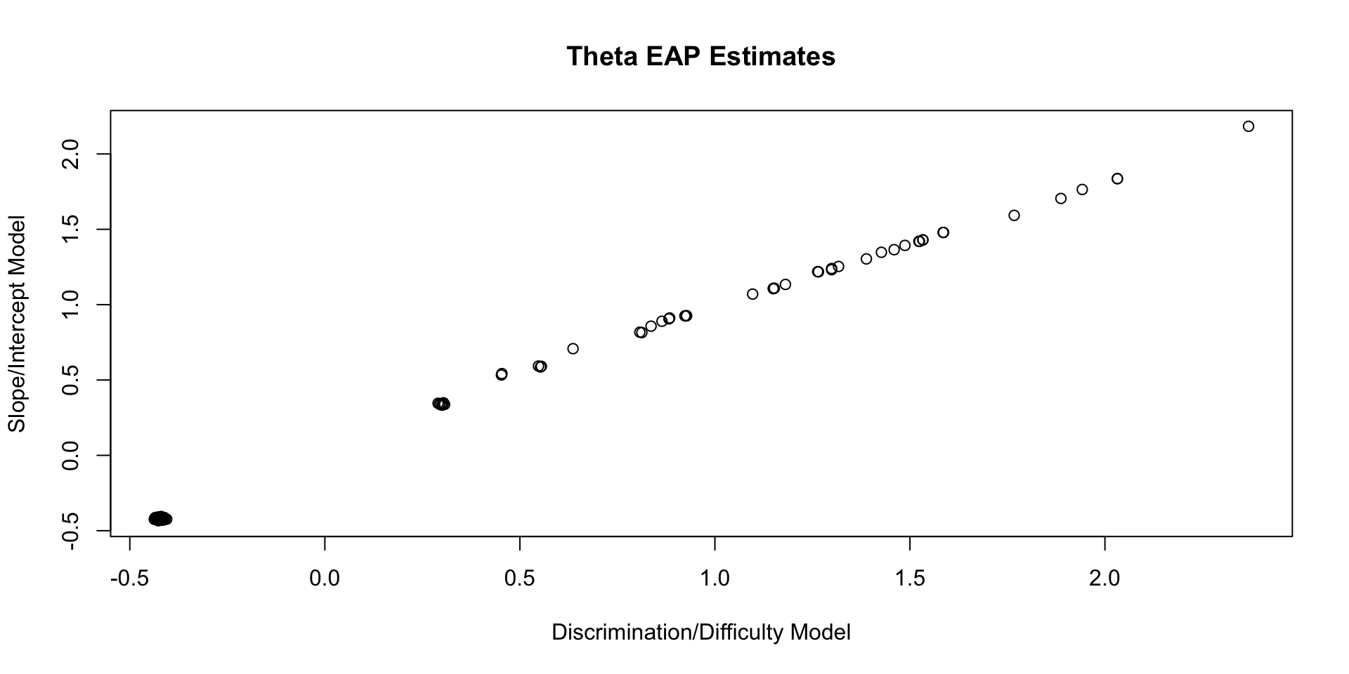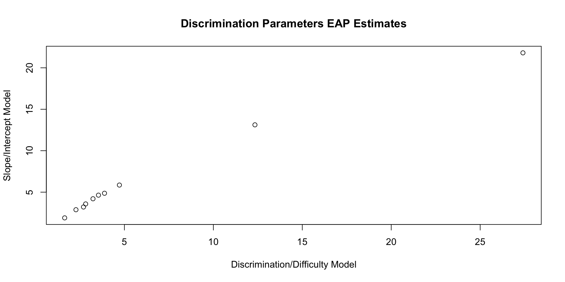 }We can also estimate the slope/intercept parameters from the discrimination/difficulty parameters: