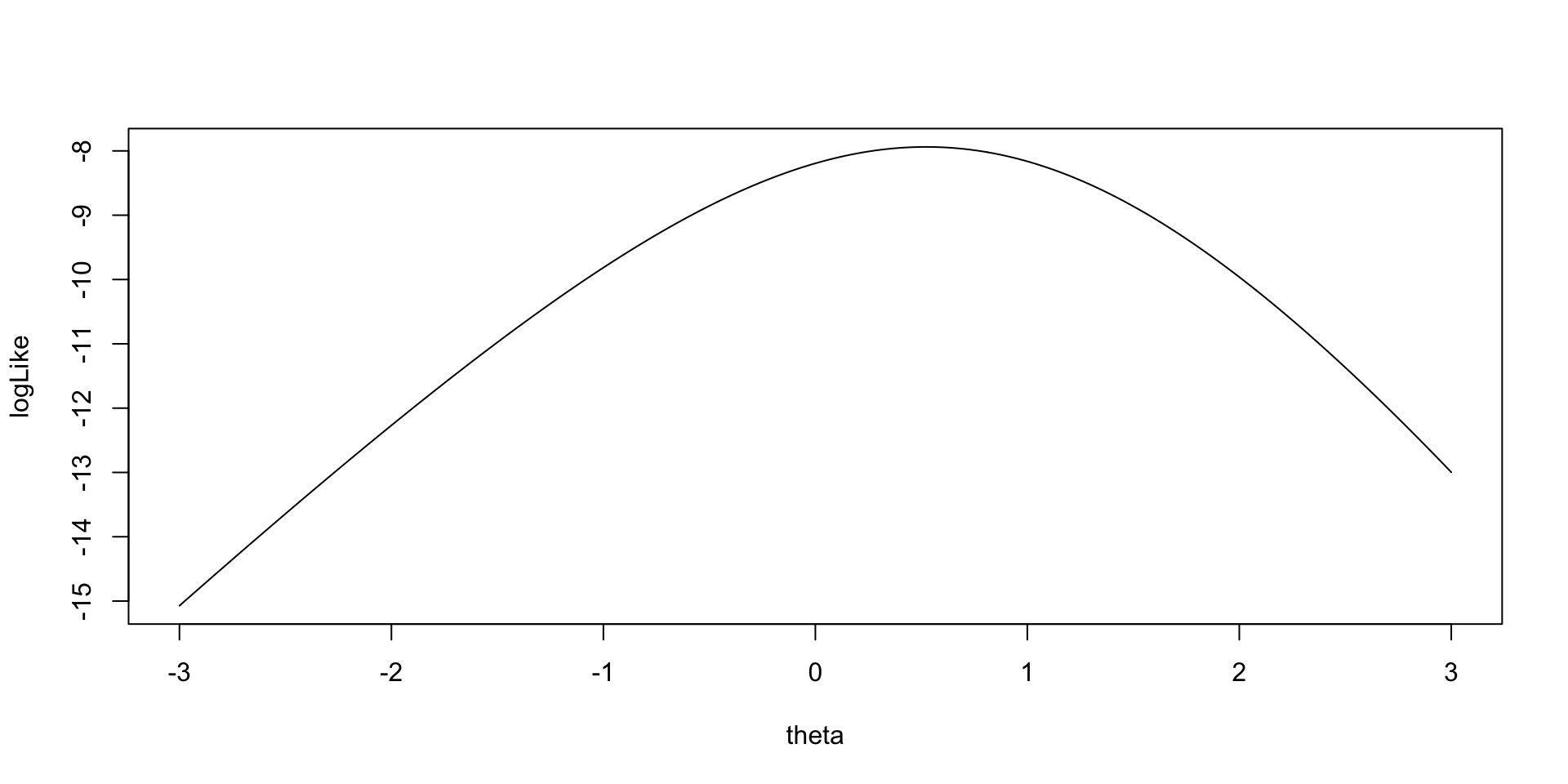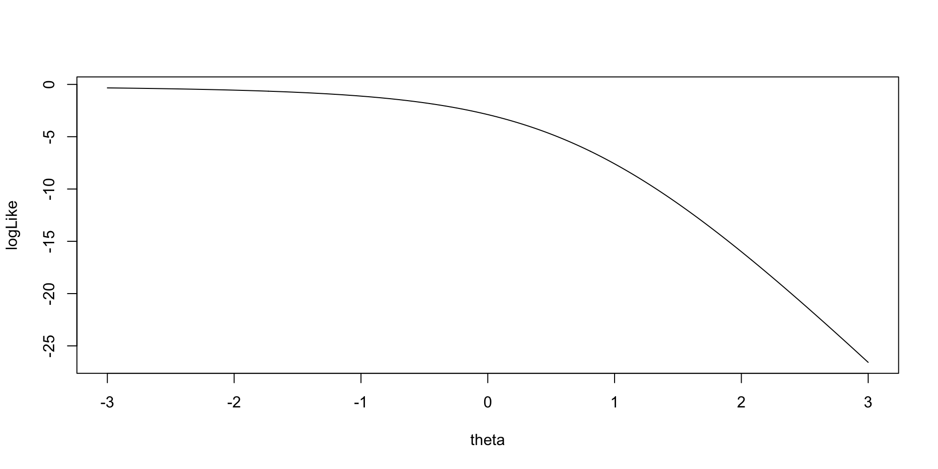 For a given value of \(\theta\), we can calculate an item’s information by taking the second partial derivative the model/data likelihood for an time with respect to \(\theta\)