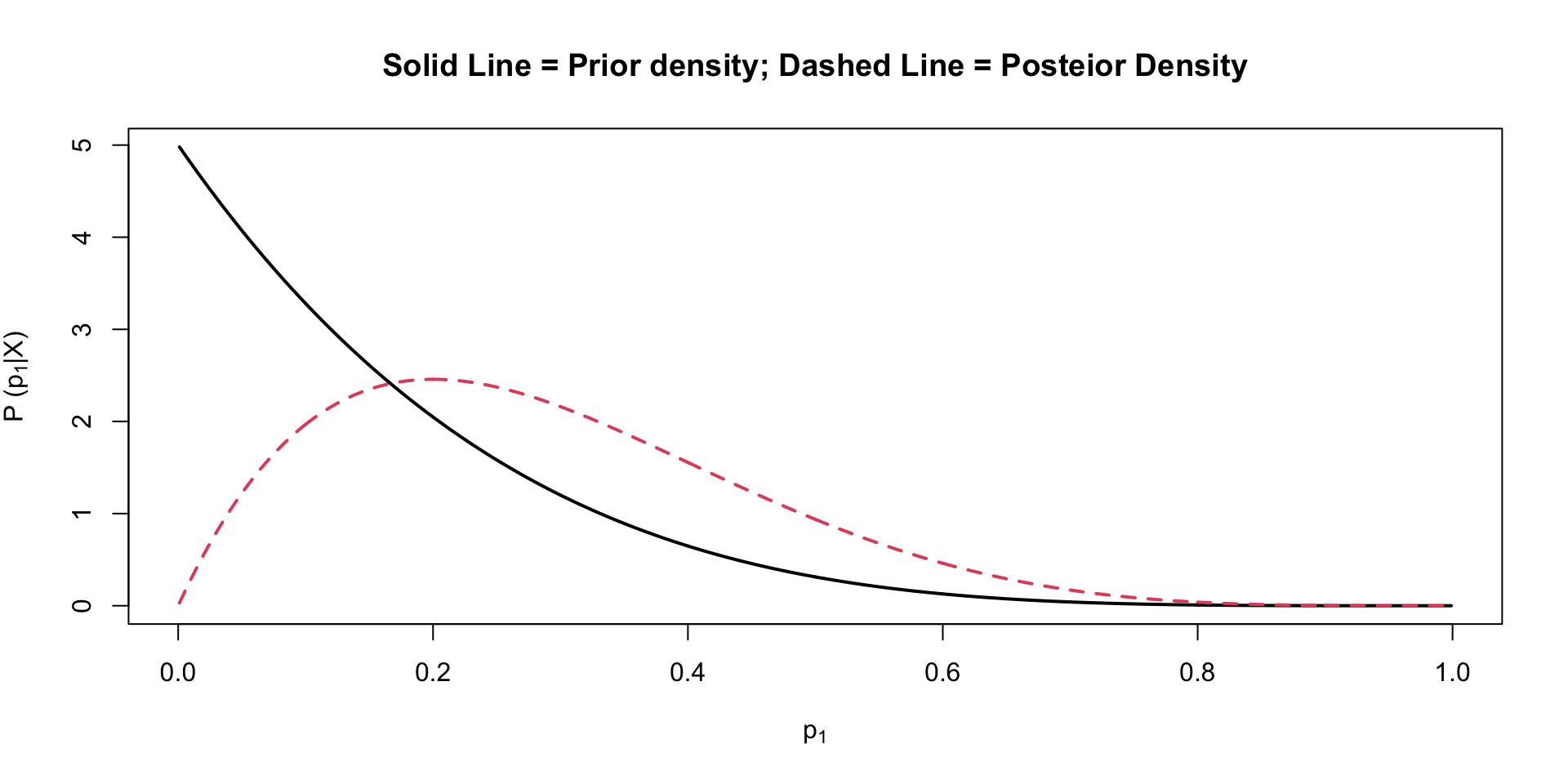 - With prior hyperparameters \(a=1\) and \(b=5\)