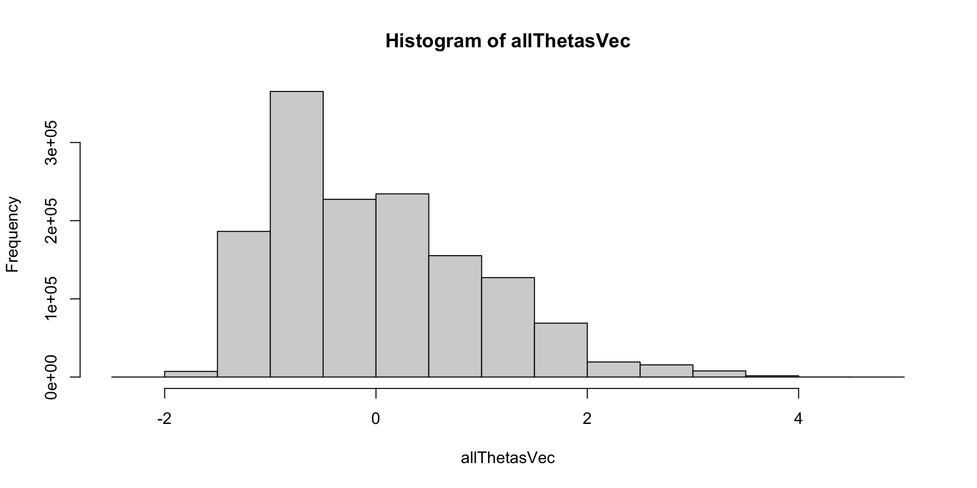 We will initially assume \(\theta_p \sim N(0,1)\), which allows us to estimate all item parameters of the model