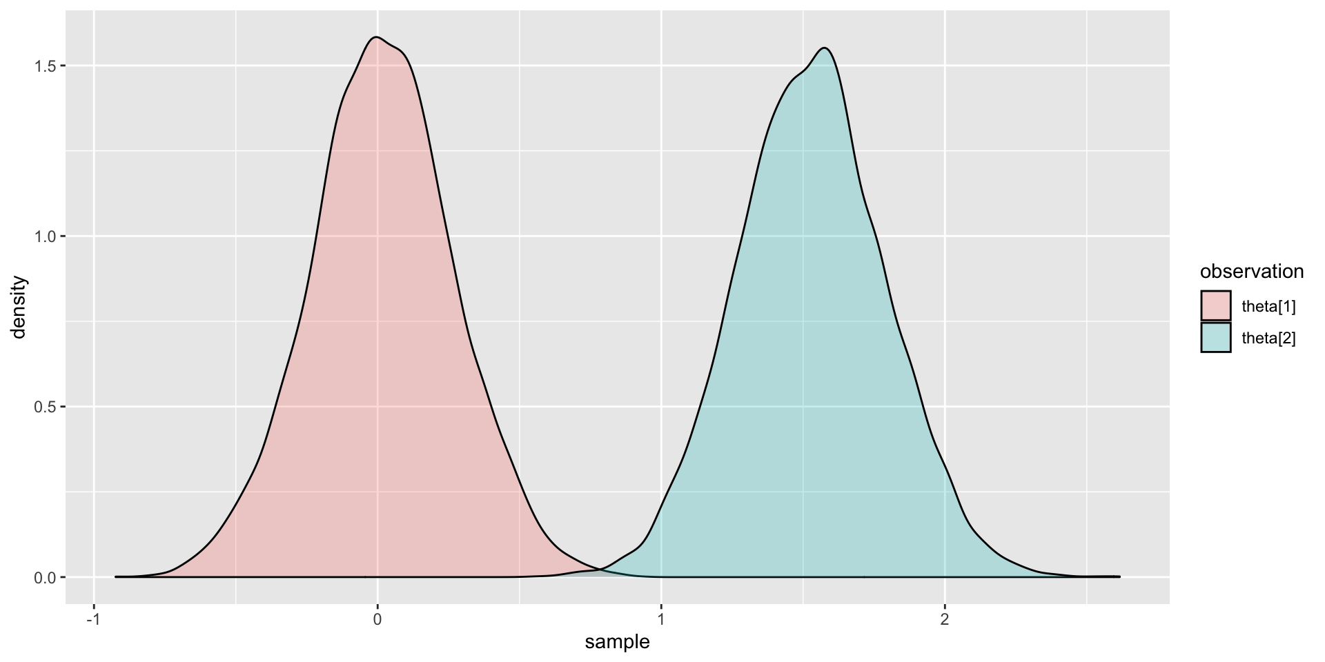 model { lambda ~multi_normal(meanLambda, covLambda); // Prior for item discrimination/factor loadings mu ~multi_normal(meanMu, covMu); // Prior for item intercepts psi ~exponential(psiRate); // Prior for unique standard deviations theta ~normal(0, 1); // Prior for latent variable (with mean/sd specified)for (item in1:nItems){ Y[,item] ~normal(mu[item] + lambda[item]*theta, psi[item]); }}