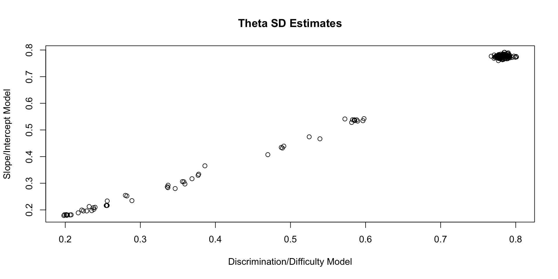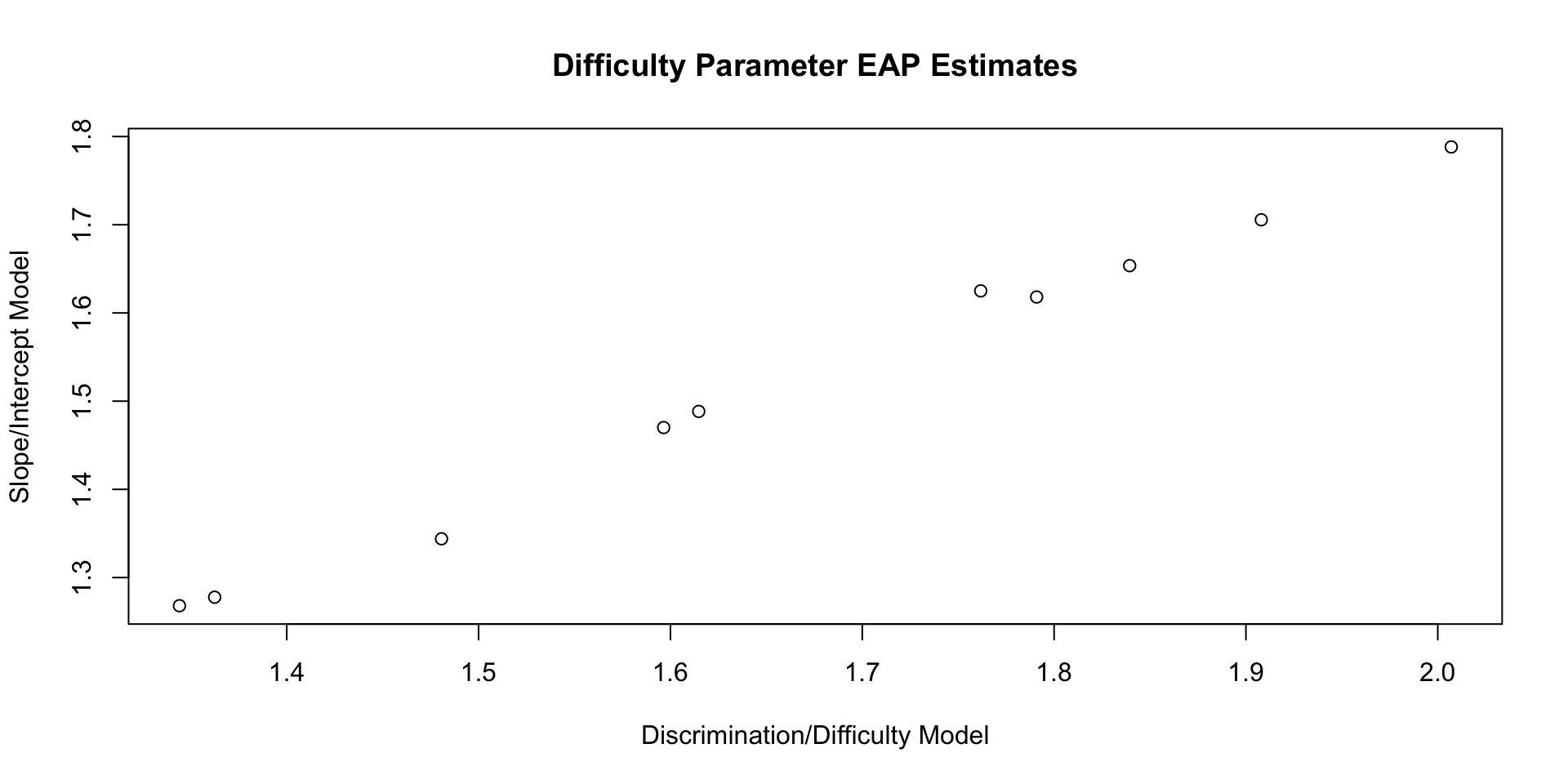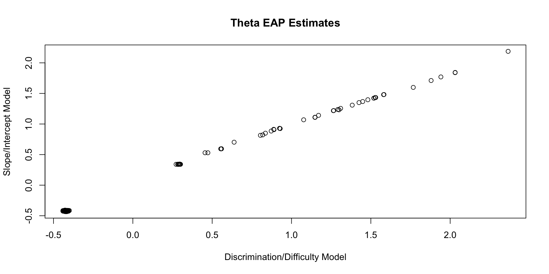 }We can also estimate the slope/intercept parameters from the discrimination/difficulty parameters: