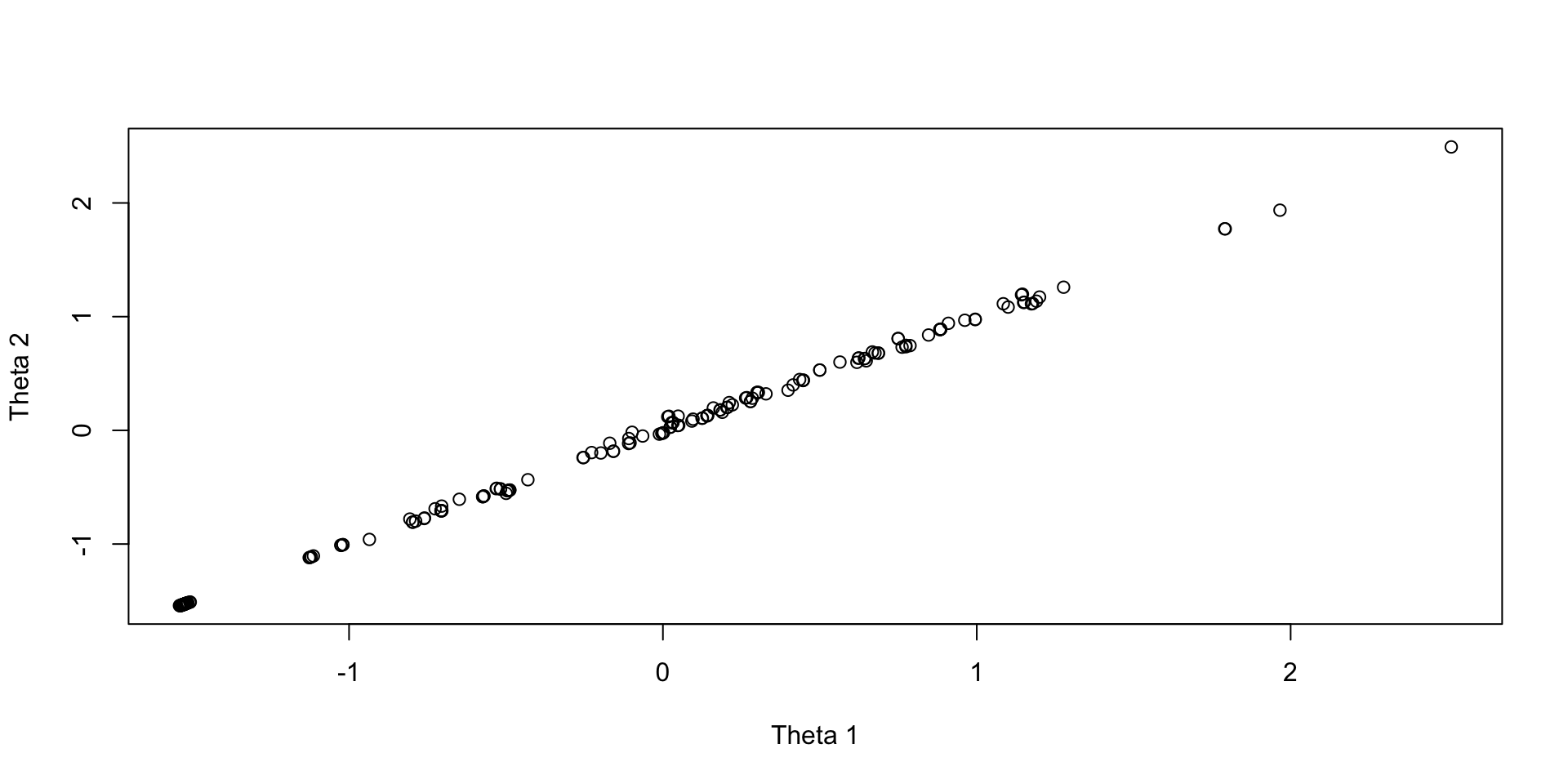 Alternatively, we would specify \(\boldsymbol{\theta}_p \sim N_D\left( \boldsymbol{\mu}_\theta, \boldsymbol{\Sigma}_\theta \right)\); but, we cannot always estimate \(\boldsymbol{\mu}_\theta\) and \(\boldsymbol{\Sigma}_\theta\)