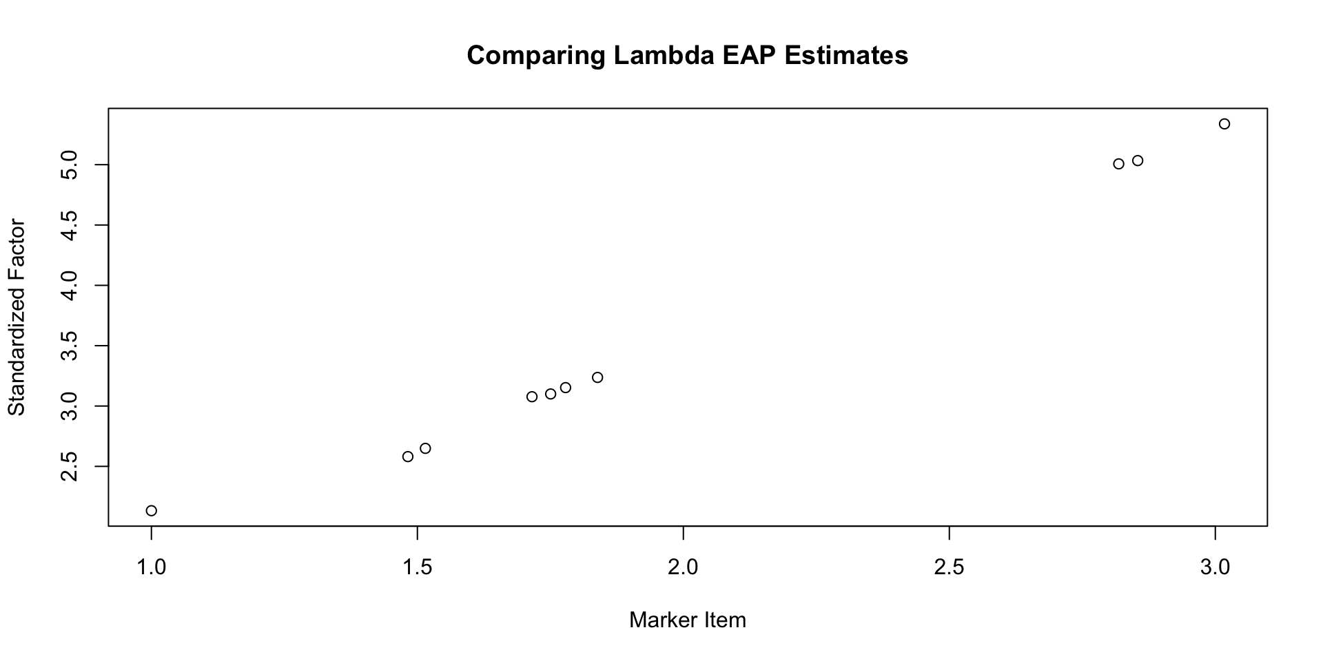 transformed parameters{ vector[nItems] lambda; // the loadings that go into the model itself lambda[1] =1.0; // first loading on the factor is set to one foridentification (marker item) lambda[2:(nItems)] = initLambda[1:(nItems-1)]; // rest of loadings are set to estimated values in initLambda}