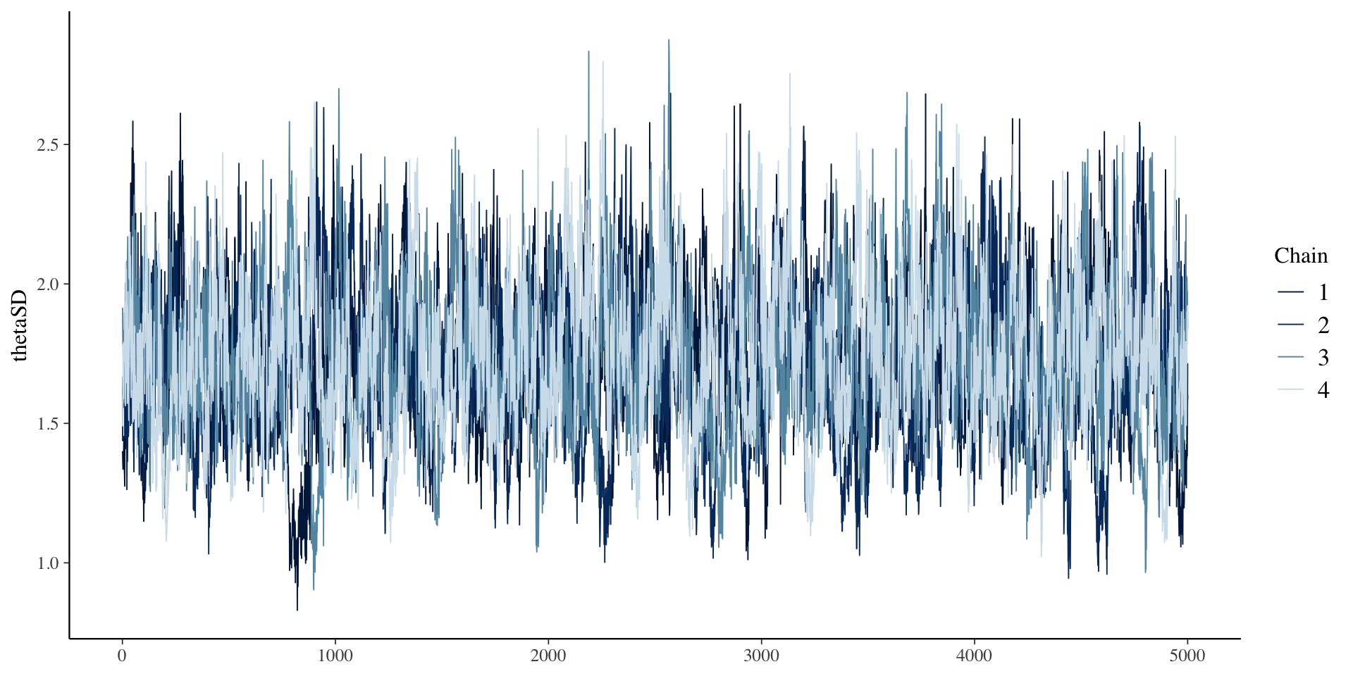 Here, we are only estimating the standard deviation of \(\theta\)