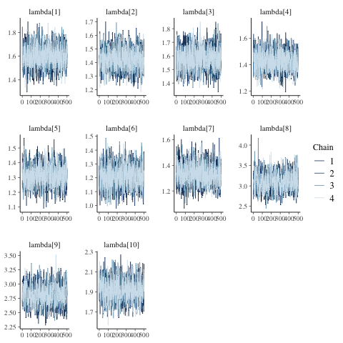 As with other Bayesian models, we can use WAIC and LOO to compare the model fit of two Bayesian models