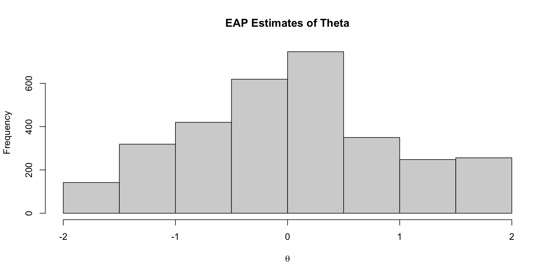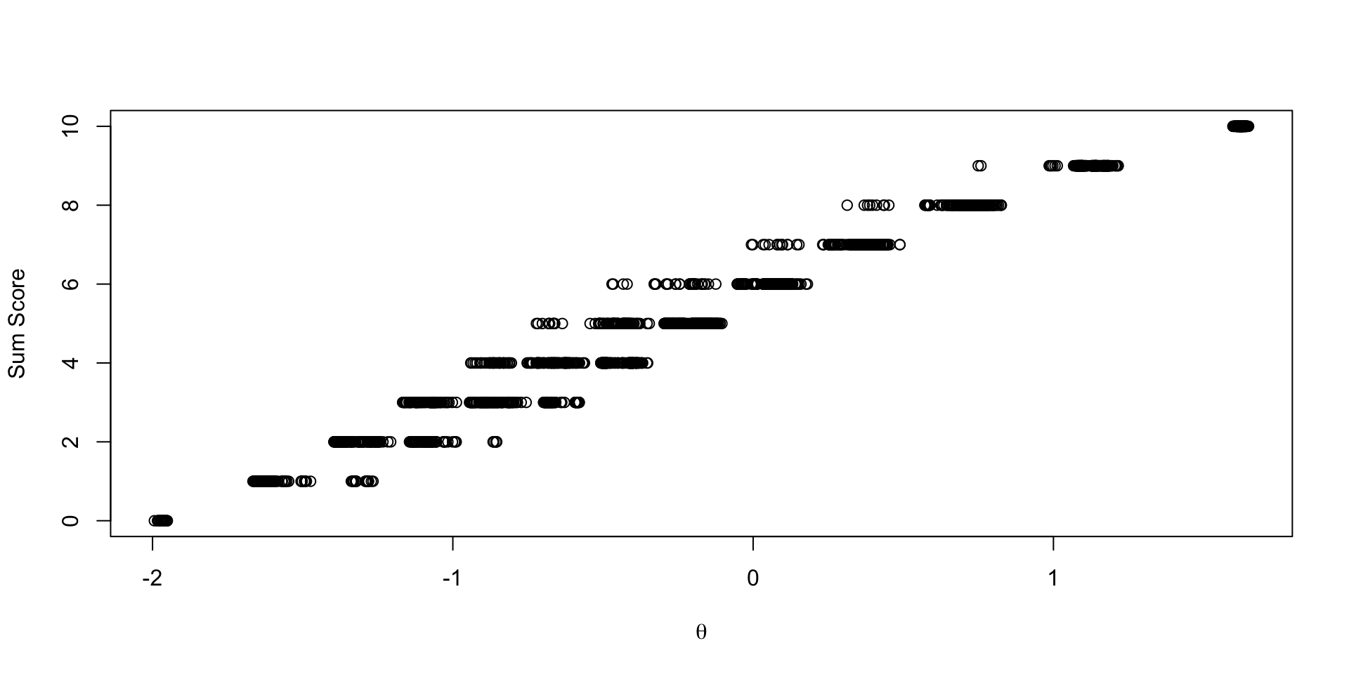 We will begin with the linear predictor we had from the normal distribution models (Confirmatory factor analysis: \(\mu_i +\lambda_i\theta_p\) )